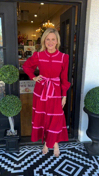 Get ready to fall in love with the Button Down Scalloped Tiered Dress! This stunning dress features a striking color-blocking design, tiered scalloped detail, button down and a detachable waist tie. Perfect for adding a pop of color to your wardrobe. With a playful and flirty design, you'll feel confident and stylish wherever you go.